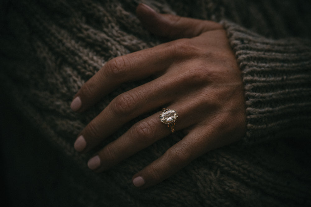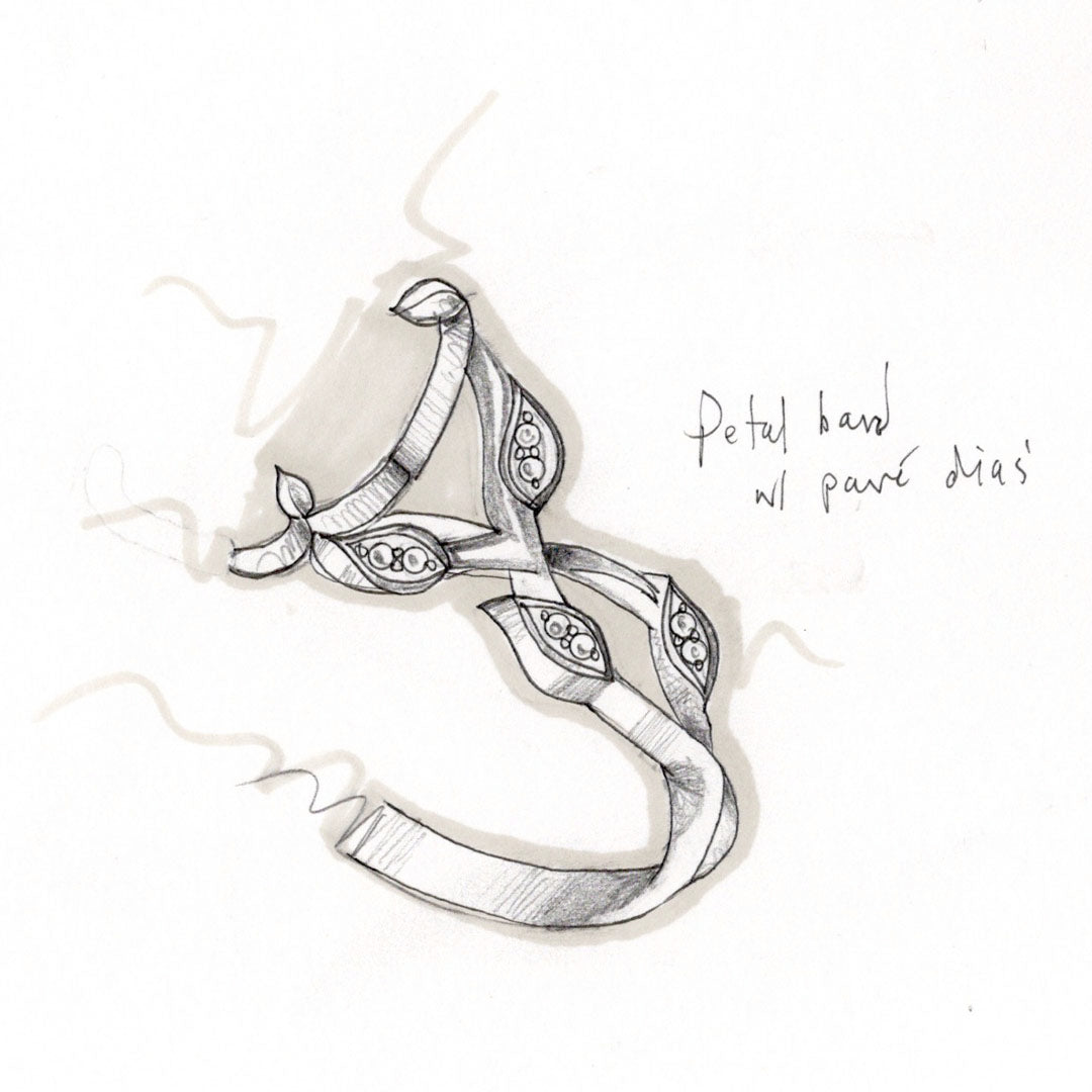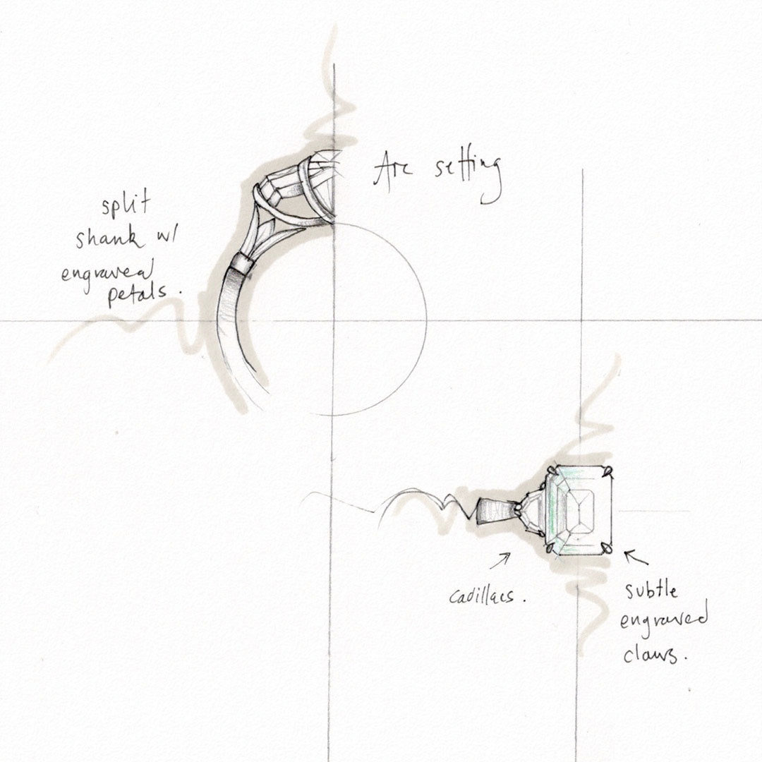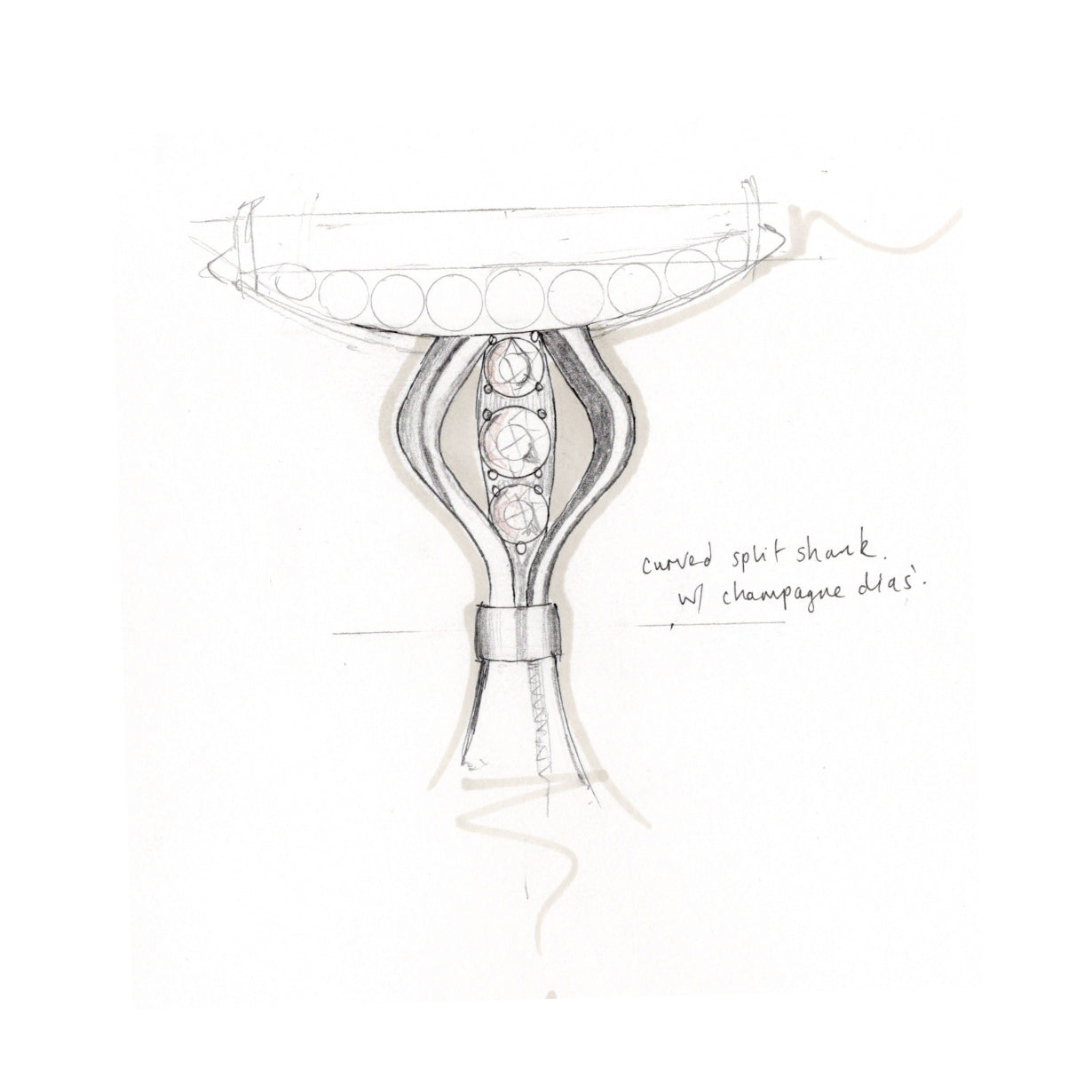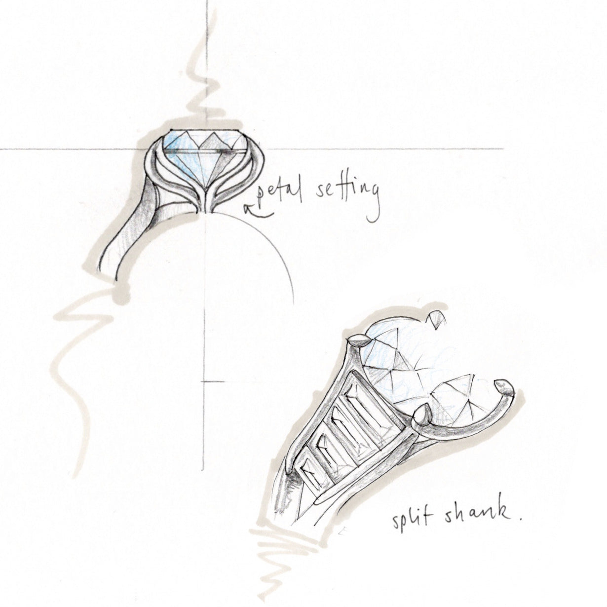 The Etive ring began with a remarkable find; a 2.5ct oval old-cut diamond that stopped me in my tracks. Exceptionally clean and beautifully proportioned with a divine warm white twinkle.