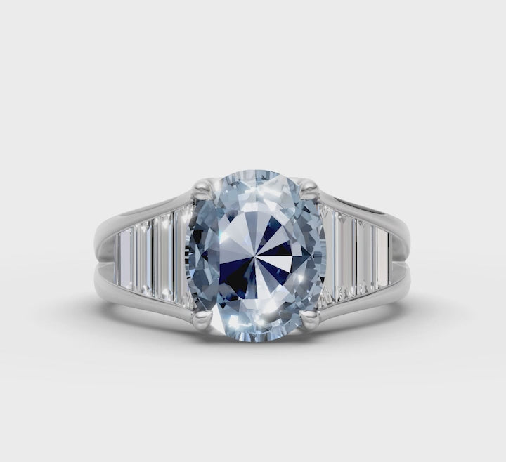 The Sòlas ring is crowned with a natural sapphire from Sri Lanka in the most serene shade of ice blue. With deep frosty tones shifting gently in the light, it’s a magical gemstone full of character and life.