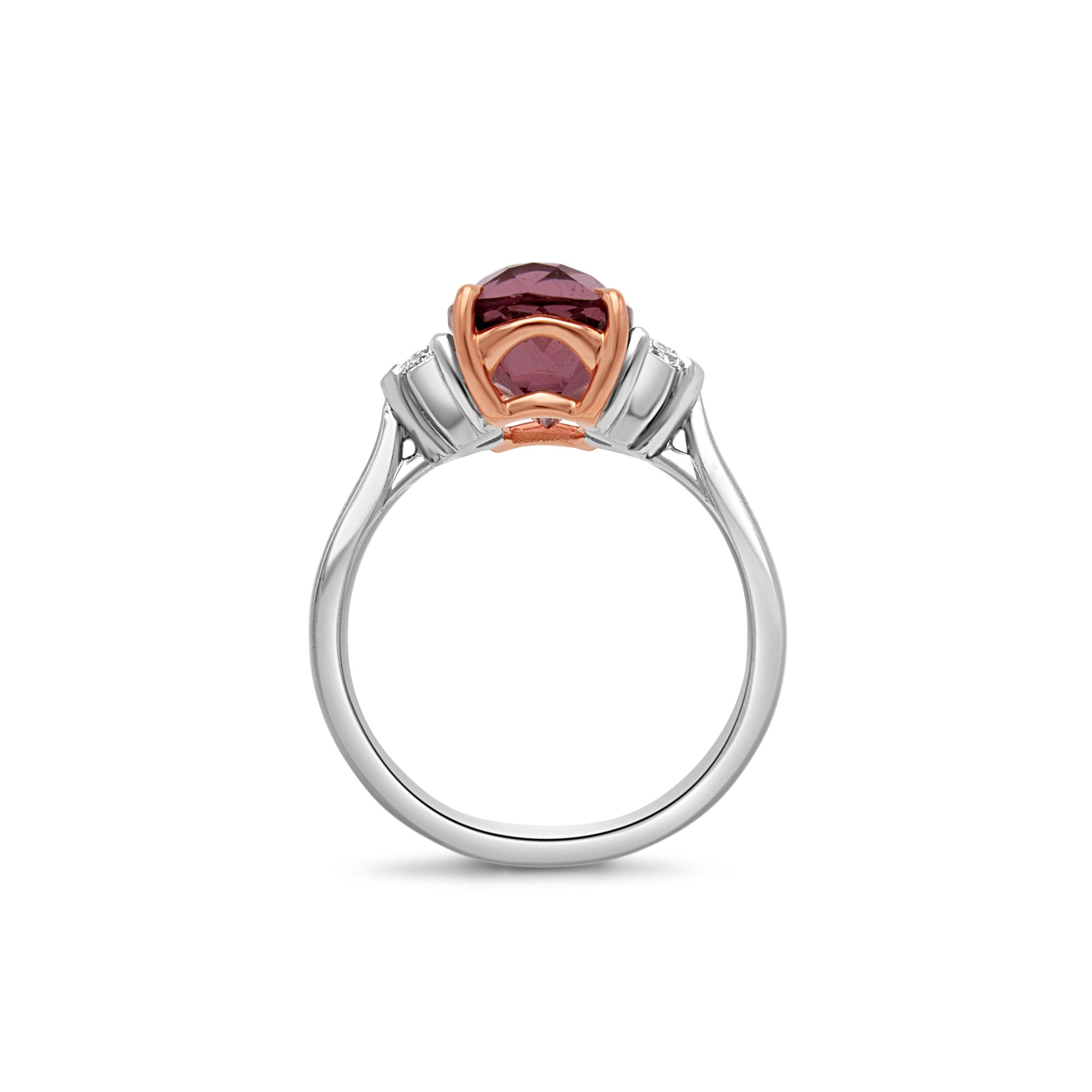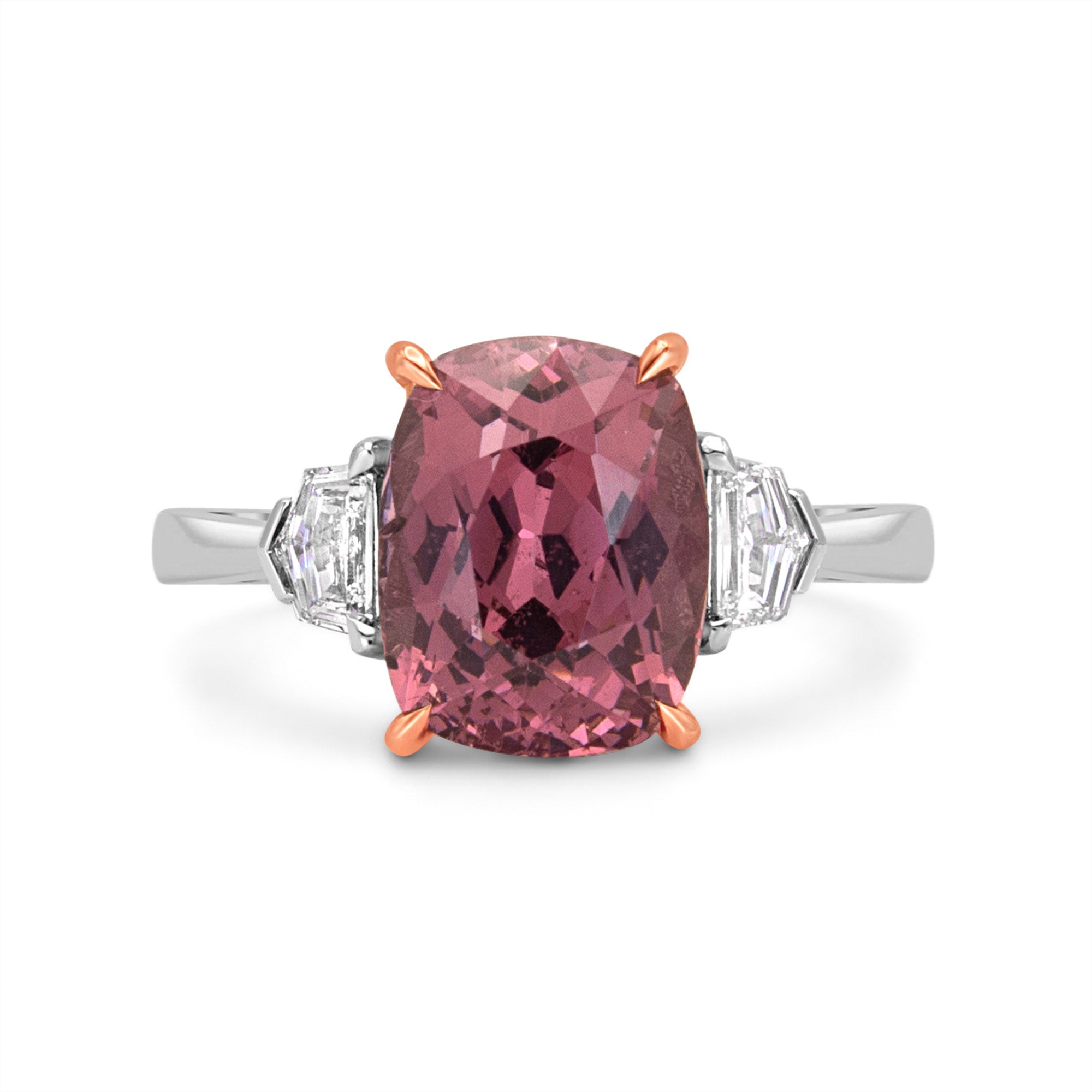 - Main stone: 4.78ct cushion-cut Malaya garnet (Bekily, Madagascar)