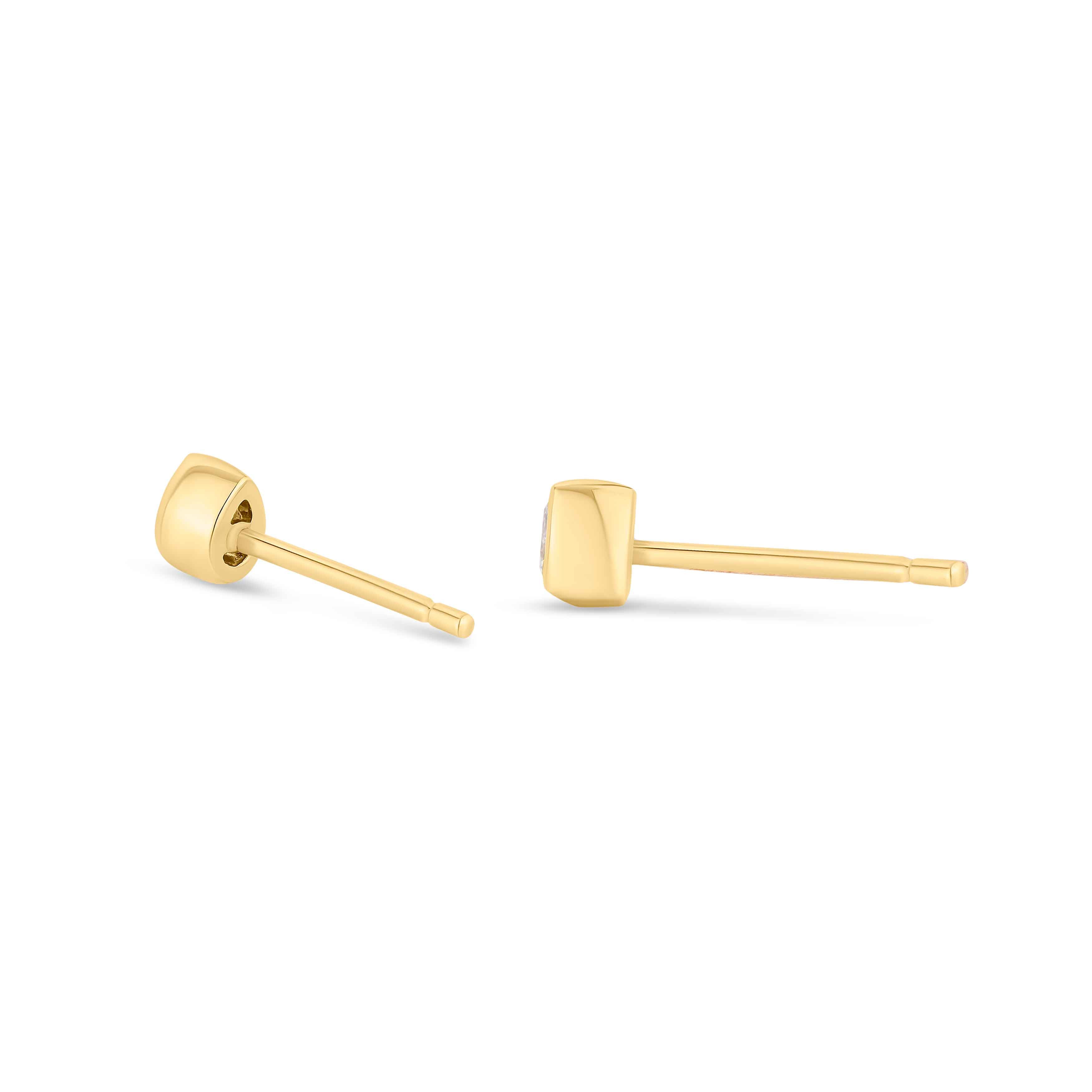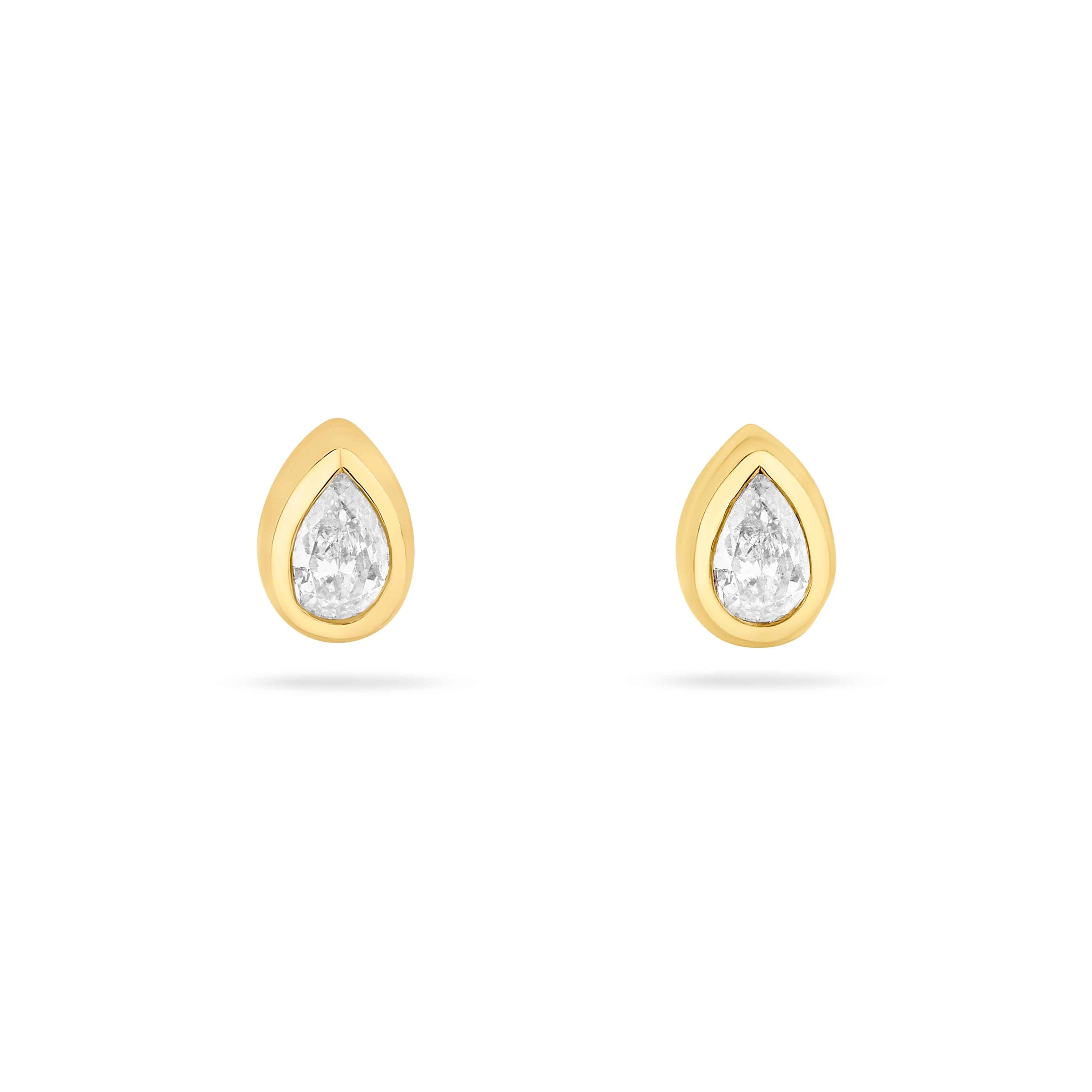 Our pear-shaped diamond stud earrings feature 3mm bezel set diamond drops to add a touch of elegance to the ear.