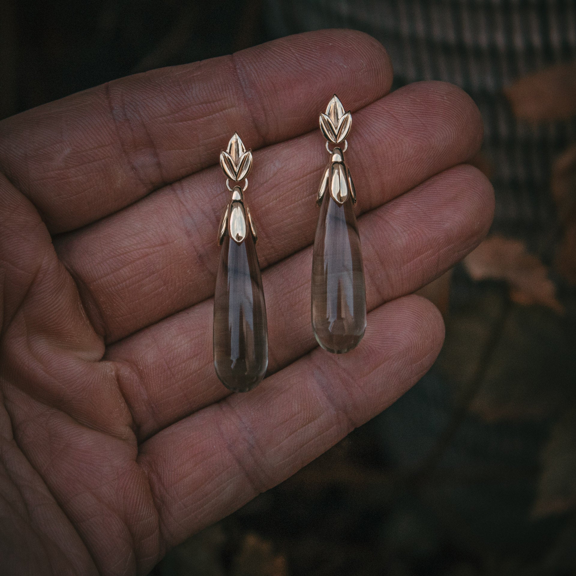Green Amethyst drop earrings with snowdrop detailing set in 9ct yellow gold.
