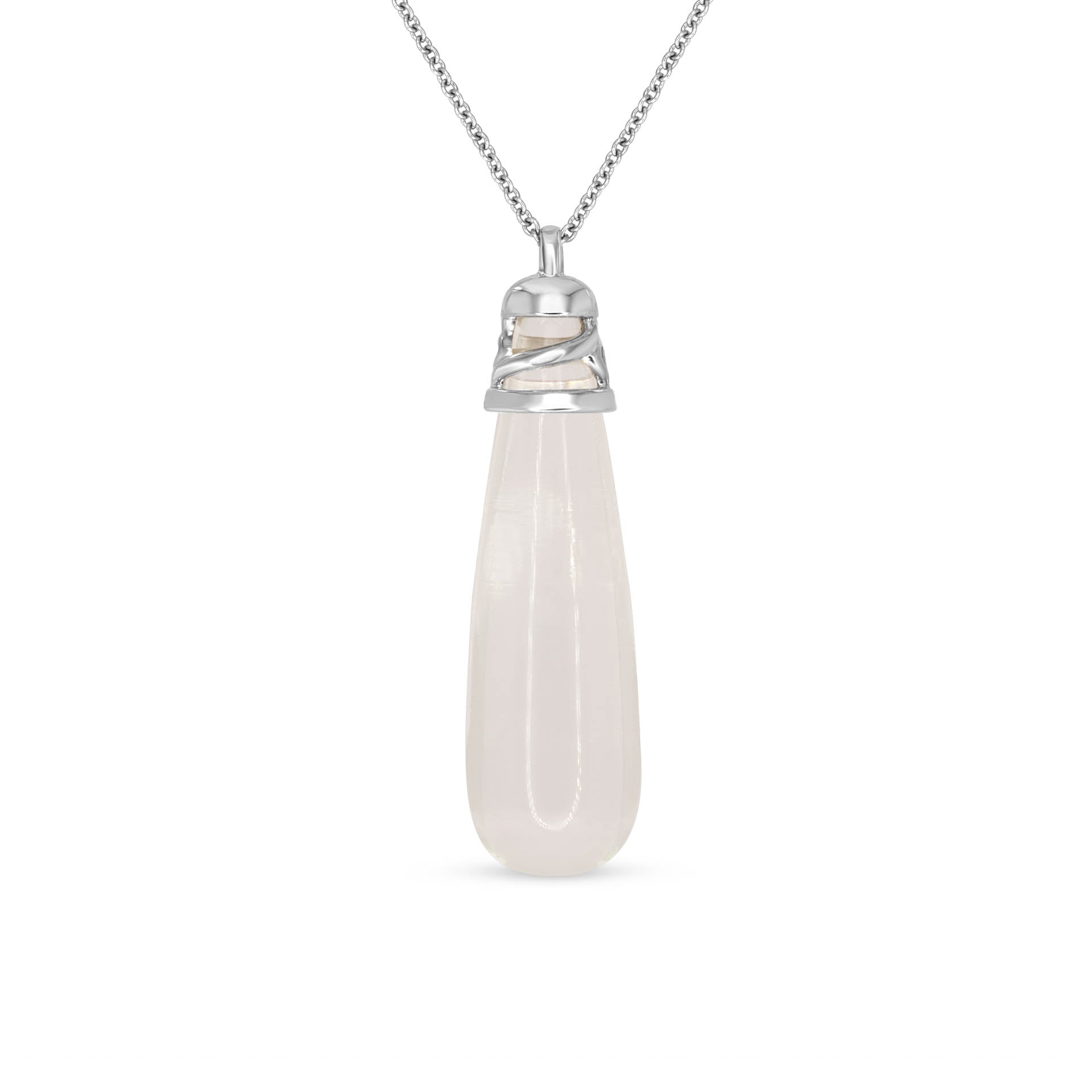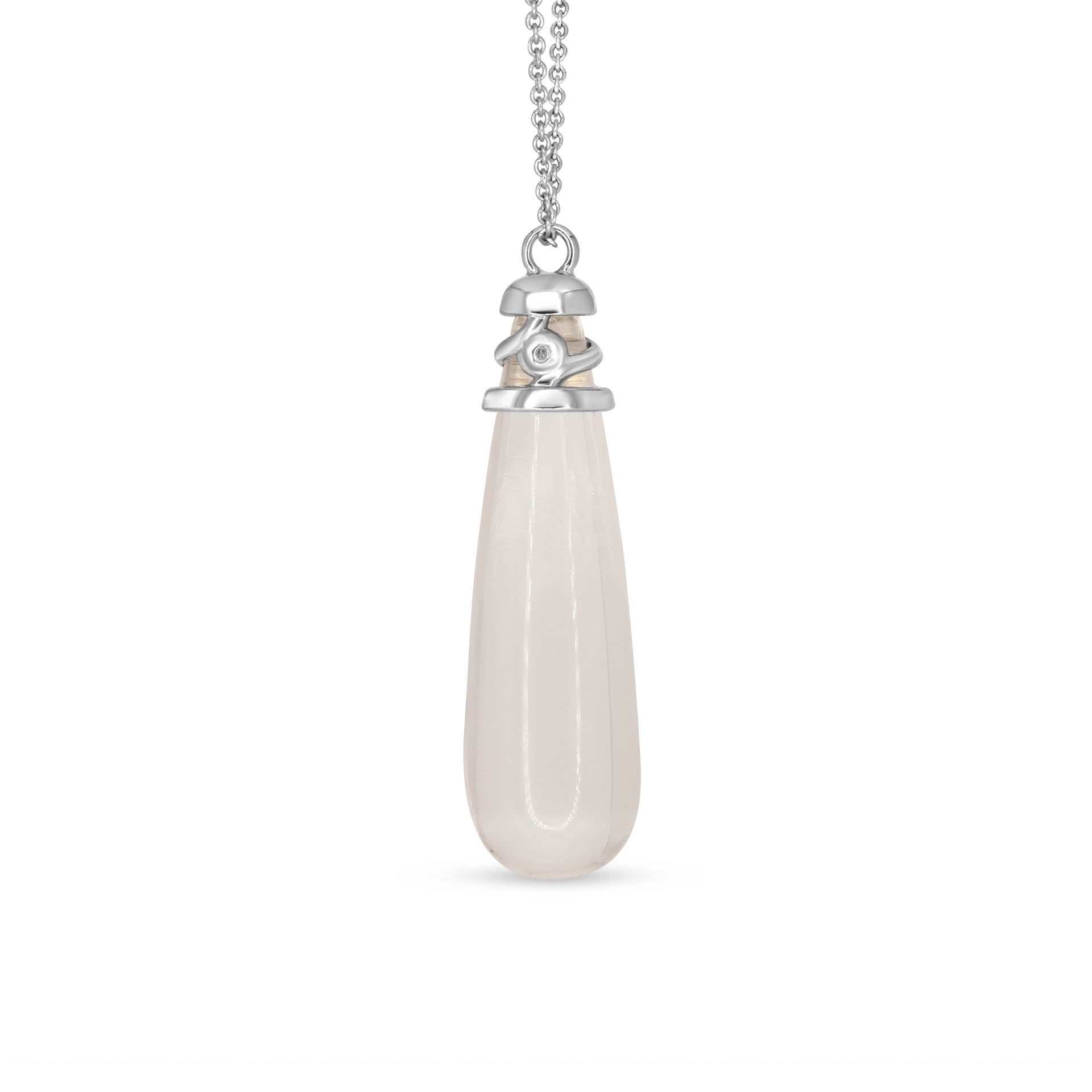 A one-off natural quartz crystal drop pendant in 18ct white gold.