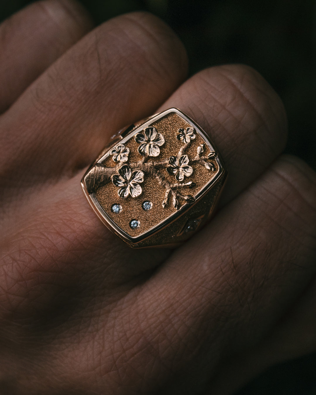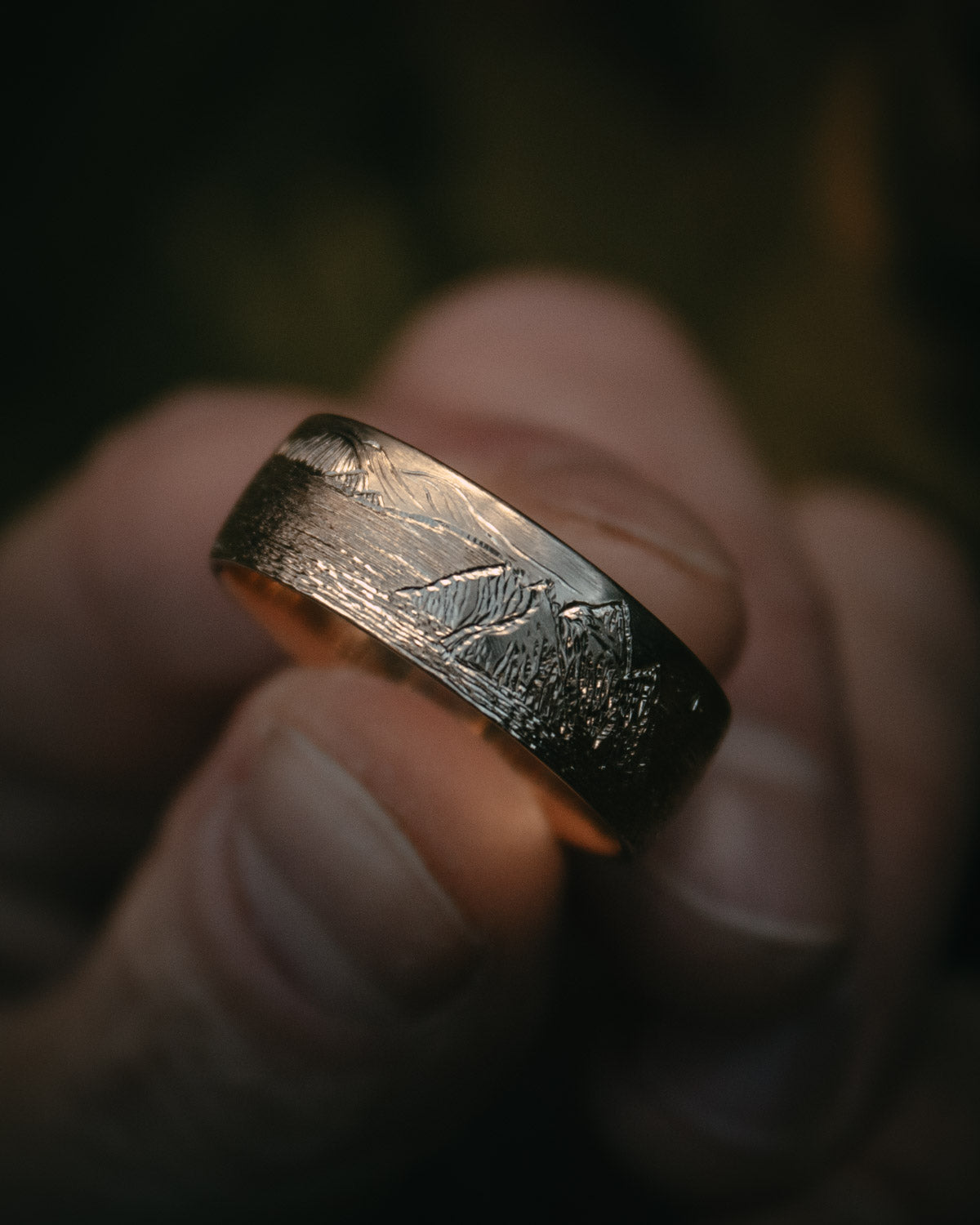 Hand-engraving is an art; like painting on metal with texture and depth. Whether it’s an entirely engraved wedding band or a wee symbol on the inside of a ring, beautiful hand-engraving is a wonderful way to add personal narrative to a piece and takes bespoke to a whole new level.